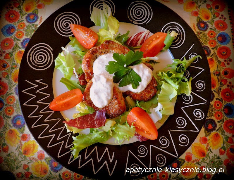 Wszystkie składniki sosu miksujemy na gładką masę. Podajemy polędwiczki z sosem i posypujemy natką pietruszki. Smacznego 🙂