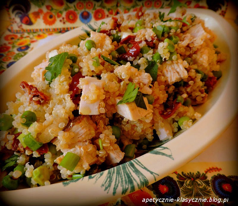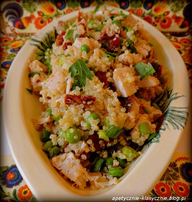 QUINOA Z SUSZONYMI POMIDORAMI I GROSZKIEM