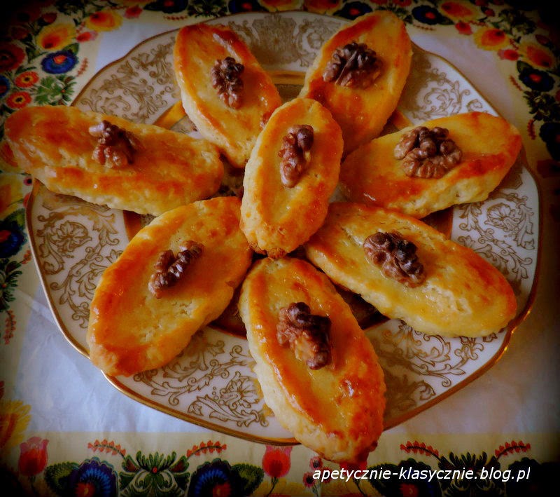 Niezwykle kruche ciasteczka. Sekret ich delikatności tkwi w dodatku białego sera do ciasta. Dzięki temu świetnie smakują, przypominając odrobinę ciasto francuskie, ale są dużo lżejsze. Orzechy pod wpływem temperatury uwalniają swój aromat, wzbogacając smak i zapach. Bardzo proste w przygotowaniu, nie trzeba nawet rozwałkowywać ciasta, wystarczy pokroić nożem. Pyszne do popołudniowej kawy lub herbaty.
