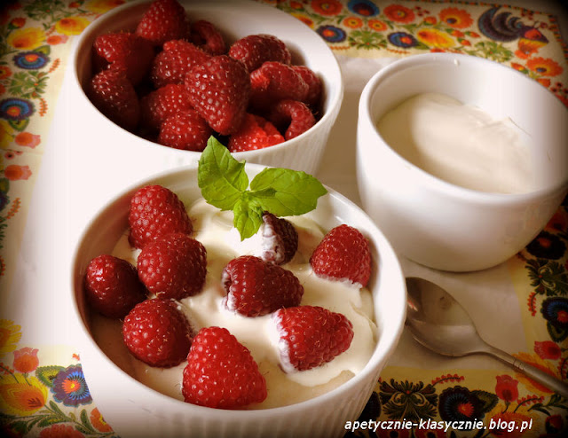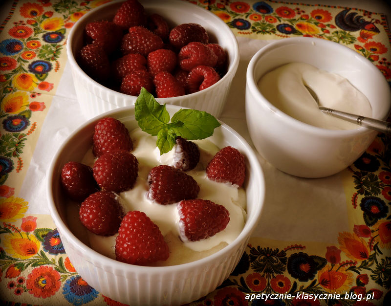 Dodatki: tłusta śmietana, maliny