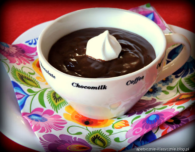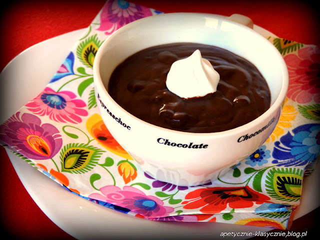 Pyszny budyń ekstremalnie czekoladowy, bo i z dodatkiem kakao i z prawdziwą gorzką czekoladą. Podany na zimno przypomina krem czekoladowy, a w wersji na ciepło smakuje jak płynna bardzo gęsta czekolada. Świetny deser dla wielbicieli czekolady, czyli właściwie dla nas wszystkich. Ja uwielbiam na ciepło z kleksem bitej śmietany, ale bardzo fajnie smakuje też z dodatkiem suszonej żurawiny lub sokiem malinowym 🙂