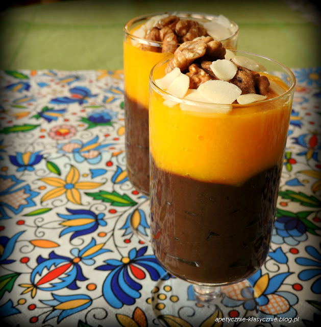 Deser, który możemy jeść bez poczucia winy, że odłoży się tam, gdzie nie chcemy. Jedna warstwa to delikatny mus o smaku ciemnej czekolady i pięknym czekoladowym kolorze. Druga warstwa to słodkie, soczyste i bardzo słoneczne mango w postaci owocowego musu. Deser jest nie tylko smaczny, ale i bardzo zdrowy, bo przygotowany wyłącznie z naturalnych, roślinnych, nieprzetworzonych składników. Dodaje energii i poprawia humor. Polecam wszystkim, szczególnie tym, którzy dbają o linię 🙂