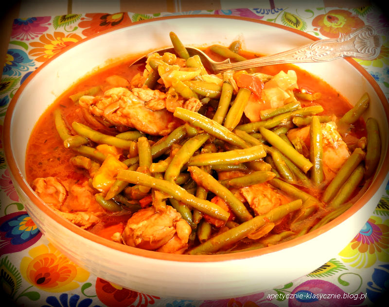 Nie jestem fanką napojów gazowanych. Z pewnością lepiej na nasze zdrowie działają soki lub woda mineralna. Jednak od czasu do czasu pozwalam sobie na małe grzeszki. Tym razem coca-cola sprawdziła się nie jako dodatek do dania, ale jego składnik. Powstała fajna potrawa, w której delikatne kawałki kurczaka, cebula i papryka zostały zatopione w gęstym i aromatycznym sosie. Cola połączyła swój specyficzny, słodkawy smak ze słonawym sosem sojowym, kwaskowatym przecierem pomidorowym, czosnkiem, ziołami prowansalskimi i ostrą papryką. Całość jeszcze wzbogaciłam jędrną zieloną fasolką szparagową. Danie świetnie smakuje z ryżem lub świeżym pieczywem. Polecam 🙂