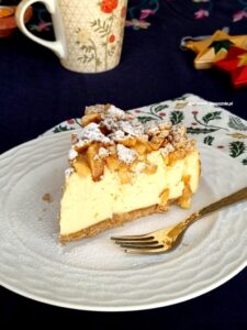 Obłędny sernik z jabłkami i piernikową kruszonką 🙂 cienka warstwa kruchego ciasta, na nim warstwa kremowego sernika, kwaskowe jabłka z cynamonem i piernikowa kruszonka, po prostu poezja smaków 🙂