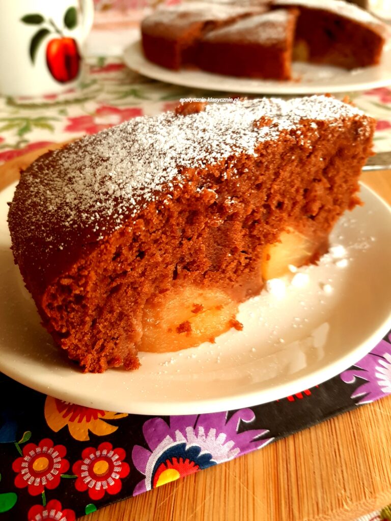 Wilgotne, czekoladowe ciasto z dodatkiem jabłek. Bardzo proste do zrobienia, a efekt naprawdę pyszny. Połączenie czekoladowego ciasta i soczystych jabłek smakuje wybornie. Kawałki jabłek układamy na dnie formy do pieczenia i przykrywamy lekkim czekoladowym ciastem. Świetne ciasto czekoladowe z jabłkiem, idealne gdy mamy ochotę na pyszne ciasto bez dużych nakładów pracy. Serdecznie polecam 🙂