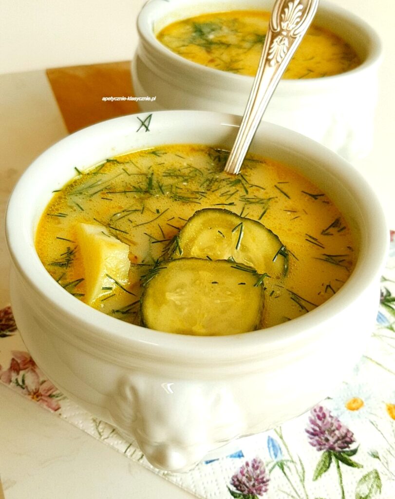 Znana i lubiana zupa w odmienionej wersji. Bardzo prosta i szybka do zrobienia, z ogórkami małosolnymi zamiast tradycyjnych ogórków kiszonych. Dzięki temu jest delikatniejsza w smaku, lekko kwaskowa, ale równie smaczna. Dodatek ziemniaków sprawia, że zupa jest pożywna, a świeży koperek podbija smak. Zupę wzbogaca też dodatek śmietany, ale można użyć śmietanki lub mleczka kokosowego. Gorąco polecam 🙂