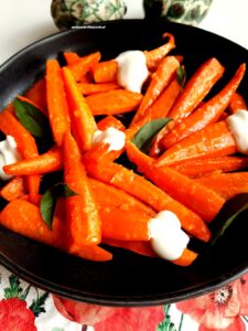 Pieczona marchewka z imbirem, miodem i czosnkiem, smakuje wyjątkowo, jednocześnie słodko i pikantnie, a do tego jest chrupiąca 🙂