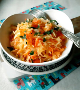 Na wszelkie wirusy i inne zarazy polecam surówkę z kapusty kiszonej, to prawdziwa bomba witaminowa i sposób na poprawę odporności sprawdzony przez nasze babcie i mamy 🙂