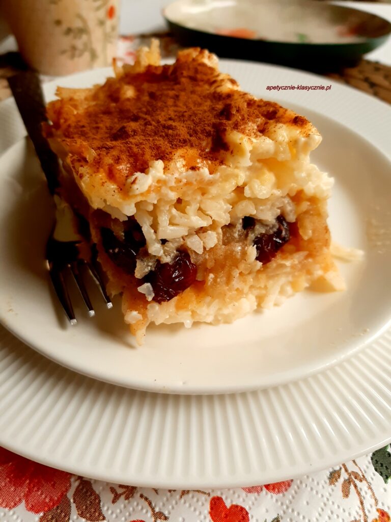 Ryż zapiekany z jabłkami i cynamonem, pyszny smak, którego się nie zapomina. To danie zawsze przypomina mi smaki dzieciństwa, do których lubię wracać. Moją wersję wzbogaciłam o żurawinę, dzięki czemu jest jeszcze lepsza, urozmaicona i smaczniejsza. Można dodać też inne bakalie, np. rodzynki lub daktyle, albo figi. Ryż zapiekany z jabłkami i żurawiną pysznie smakuje, pięknie pachnie, łatwy do zrobienia ze składników, które można kupić w zwykłym sklepie. Zamiast zwykłego białego ryżu użyłam ryżu basmati, bo ma niższy indeks glikemiczny i więcej składników odżywczych, ale zwykły biały ryż też oczywiście pasuje do tej potrawy. Ryż zapiekany z jabłkami i żurawiną można podać na ciepło lub na zimno. Po wystygnięciu można tą potrawę kroić, jak ciasto. To świetne danie, dzięki któremu możemy przenieść się do czasów dzieciństwa, gorąco polecam 🙂